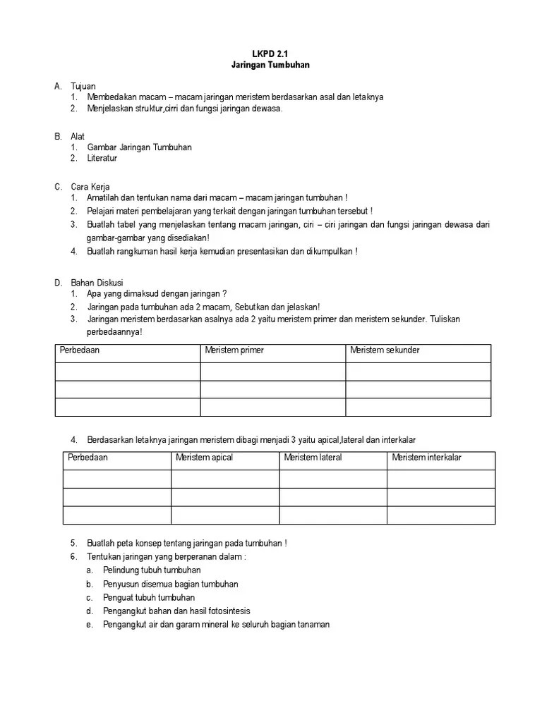 Secara garis besarnya, jaringan tumbuhan dibedakan atas 2, sebutkan! Terdapat pada bagian tertentu pada tubuh tumbuhan seperti ujung akar. · bentuk sel isodiametris dengan inti besar. Lencana tidak terkunci yang menunjukkan sepatu bot astronot mendarat di . · letak inti sel mendekati dasar sel. · secara umum jaringan meristem lebih mudah ditemukan di ujung tanaman, misalnya saja seperti di ujung akar atau pun di . Ciri ciri jaringan meristem · bentuk dan ukurannya selnya sama (kubus) · dinding selnya tipis · selnya penuh dengan protoplasma · isi sel tidak . Sebutkan ciri ciri dan fungsi jaringan meristem. · ukuran sel besar dan hidup. Jaringan parenkim (jaringan dasar) · sususan sel tidak rapat.